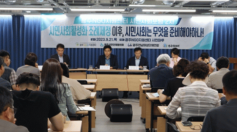 ±¤ÁֽùλçȸÁö¿ø¼¾ÅÍ °ü°èÀÚ´Â ¡°2009³â ¼³¸³ ÀÌ·¡ ±¤ÁÖNGOÁö¿ø¼¾Å͸¦ ¹ÝÃßÇϸé ÇÑÁ¤µÈ ÀÚ¿ø°ú ¿¹»êÀ¸·Î ÀÏÀÏÀÌ ¿°ÅÇÒ ¼ö ¾øÀ» Á¤µµ·Î ¸¹Àº »ç¾÷À» ÃßÁøÇßÀ¸³ª ½Ã¹Î°ú ½Ã¹Î»çȸ´ÜüÀÇ ´«³ôÀÌ¿¡´Â ¹ÌÈíÇÏ°í ¾Æ½¬¿î Á¡µµ ¸¹¾ÒÀ» °ÍÀÌ´Ù¡±¶ó°í ¸»ÇÏ¸ç ¡°Á¤Ã¥Åä·Ðȸ¿¡¼ µµÃâµÈ °á°ú´Â ÇâÈÄ ±¤ÁֽùλçȸÁö¿ø¼¾ÅÍÀÇ »ç¾÷°ú ¿î¿ë¿¡ Àû±ØÀûÀ¸·Î ¹Ý¿µÇϰí Á¶·Ê¿¡ ¸í½ÃµÈ ¼¾ÅÍÀÇ ±â´É°ú ¿ªÇÒµµ Â÷Áú¾øÀÌ ¼öÇàÇϰڴ١±°í ¹àÇû´Ù.