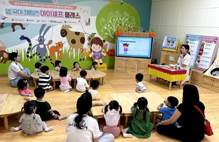 ±¤»ê±¸¾î¸°ÀÌ¡¤»çȸº¹Áö±Þ½Ä°ü¸®Áö¿ø¼¾ÅÍ´Â 10¿ù±îÁö ¼¾ÅÍ¿¡ µî·ÏµÈ ±â°üÀÇ ¿µ¡¤À¯¾ÆµéÀ» ´ë»óÀ¸·Î ¸ÅÁÖ ¼ö¿äÀÏ¿¡ ¡®¾ÆÀ̼ÎÇÁ Ŭ·¡½º¡¯ üÇè°ü ±³À°À» ½Ç½ÃÇÑ´Ù.