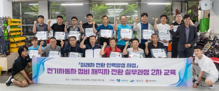 À̹ø Àü±âÀÚµ¿Â÷ Á¤ºñ ÀçÁ÷ÀÚ Àüȯ ½Ç¹«°úÁ¤ 2Â÷ ±³À°Àº ÃÑ 15¸íÀÇ ±¤»ê±¸ ¼ÒÀç °ø¾÷»ç ¹× ÀÚµ¿Â÷ °ü·Ã Á¦Á¶»ç ¹× Çù·Âü ÀçÁ÷ÀÚµéÀÌ Âü¿©ÇÑ °¡¿îµ¥, ¹Ì·¡Â÷ÀÇ À̷аú ½Ç½ÀÀ» Áß½ÉÀ¸·Î ½Ç¹«±³À°À» ¼ö°ÇÏ¿© Áö½ÄÀ» ½ÀµæÇϰí Àü±âÂ÷ ¹× ÇÏÀ̺긮µåÂ÷ °ü·Ã ½ÃÇèÀ» Ä¡·¯ ±³À°À» ¼ö·áÇß´Ù.