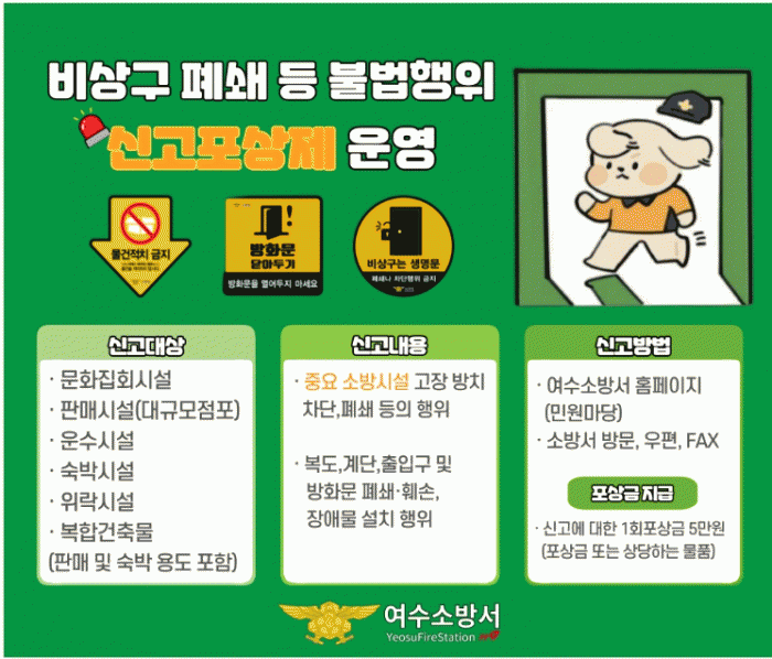 ¹®È¤ýÁýȸ½Ã¼³À̳ª ÆÇ¸Å¤ý¼÷¹Ú¤ýÀ§¶ô½Ã¼³, ´ÙÁßÀÌ¿ë¾÷¼Ò µî¿¡¼ º¹µµ¤ý°è´Ü¤ý¹æÈ¹® Æó¼â¤ýÈÑ¼Õ ¹× Àå¾Ö¹° ¼³Ä¡, ¼Ò¹æ½Ã¼³ Æó¼â¤ýÂ÷´Ü, ¼ÒÈÆßÇÁ °íÀå »óÅ ¹æÄ¡ µî ¼Ò¹æ½Ã¼³ ºÒ¹ý ÇàÀ§ ¹ß°ß ½Ã ½Å°í °¡´ÉÇÏ´Ù.