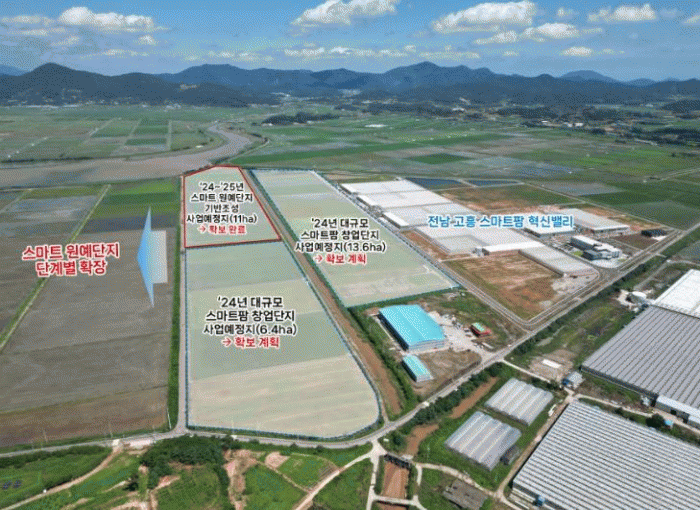 º» »ç¾÷ ±â°£Àº 2024~2026³â±îÁö·Î ÃÑ»ç¾÷ºñ 472¾ï ¿ø(±¹ºñ 240¾ï, ¿¬°è 232¾ï)ÀÌ ÅõÀڵŠÇѱ¹³ó¾îÃ̰ø»ç¿¡¼ ½º¸¶Æ® ¿µ³óÀÌ °¡´ÉÇϵµ·Ï ±â¹Ý Á¶¼º ÈÄ ÀÔÁÖ ³ó¾÷¹ýÀÎÀ» °ø¸ð ÀýÂ÷¿¡ µû¶ó ¼±Á¤Çϰí, ¼±Á¤µÈ ³ó¾÷¹ýÀÎÀÌ ±â¹Ý Á¶¼ºÀÌ ¿Ï·áµÈ ºÎÁö¸¦ ¸ÅÀÔ ÈÄ ½º¸¶Æ®ÆÊ ¿Â½Ç, °øµ¿ ½º¸¶Æ® APC(»êÁöÀ¯Åë¼¾ÅÍ), °øµ¿À°¹¦Àå µîÀ¸·Î Á¶¼ºÇÑ´Ù.