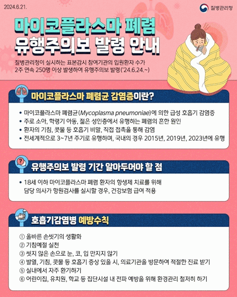 Ä๰, Ÿ¾× µîÀ» ÅëÇØ È£Èí±â·Î ÀüÆÄµÇ´Â Ư¼º»ó ¾î¸°ÀÌÁý, À¯Ä¡¿ø, Çб³ µî Áý´Ü½Ã¼³À̳ª °¡Á· °£ °¨¿°ÀÌ ½±°Ô ÀϾÙ. ±âħ ¿¹Àý Áؼö, °³ÀÎ À§»ý µî¿¡ ½Å°æ¾²°í, °¨¿°ÀÌ ÀǽɵǸé ÀÇ·á±â°ü¿¡ ¹æ¹®ÇØ ¸¶ÀÌÄÚÇö󽺸¶ Æó·Å±Õ Ç׿ø°Ë»ç¸¦ ¹Þ´Â µî Á¤È®ÇÑ Áø´Ü°ú Ä¡·á°¡ ÇÊ¿äÇÏ´Ù.