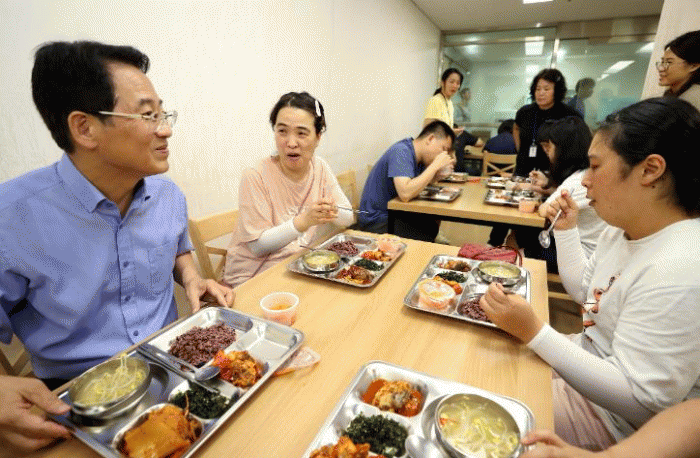 ÇöÀå¿¡¼ ¹è½Ä ºÀ»ç¿¡ À̾î Àå¾ÖÀΰú ¿ÀÂùÀ» ³ª´« °Áø¿ø °Áø±º¼ö´Â ¡°¾î·Á¿î ¿©°Ç¼Ó¿¡¼µµ ¾àÀÚº¹Áö ½ÇÇöÀ» À§ÇØ ³ë·ÂÇÏ´Â ÇöÀå Á¾»çÀÚµéÀÇ ³ë°í¿¡ Ưº°È÷ °¨»ç¸¦ µå¸°´Ù¡±¸ç ¡°¹Î¡¤°üÀÌ ±ä¹ÐÇÑ ¼ÒÅë°ú Çù·ÂÀ» ÅëÇØ ¾àÀÚº¹Áö ±â¹ÝÀ» °ÈÇϰí Àå¾ÖÀÎ º¹Áö ü°¨µµ¸¦ Çâ»ó½ÃÄÑ ³ª°¡ÀÚ¡±°í ¸»Çß´Ù.