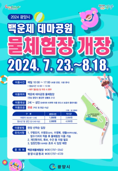 ¿ÃÇØ ¹° üÇèÀå ¿î¿µ ±â°£Àº 7¿ù 23ÀϺÎÅÍ 8¿ù 18ÀϱîÁö 27Àϰ£ ¿î¿µµÇ¸ç ¸ÅÁÖ ¿ù¿äÀÏÀº ½Ã¼³ Á¤ºñ¸¦ À§ÇØ ÈÞÀåÇÑ´Ù.