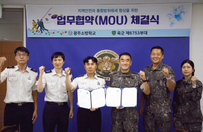 ¹Úµ¿ÇÏ ±¤ÁÖ¼Ò¹æÇб³ÀåÀº ¡°À̹ø ¾÷¹«Çù¾àÀ» ÅëÇØ ¼Ò¹æ°ú ±ºÀÌ Áö¿ª¾ÈÀü°ú ÅëÇÕ¹æÀ§Å¼¼ Çâ»óÀ» À§ÇÑ »óÈ£ Çù·ÂÀÇ Çʿ伺¿¡ °ø°¨Çߴٴµ¥ Å« Àǹ̰¡ ÀÖ´Ù¡±¸ç ¡°½Ã¹ÎÀÇ »ý¸í°ú Àç»ê º¸È£¶ó´Â °øµ¿ÀÇ »ç¸í°ú ÀÓ¹«¼öÇàÀ» À§ÇØ Àû±Ø Çù·ÂÇϰڴ١±°í ¸»Çß´Ù.