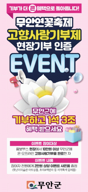 ¹«¾È±ºÀº ÃàÁ¦ ±â°£ Áß °íÇâ»ç¶û±âºÎÁ¦ È«º¸ºÎ½º¸¦ ¹æ¹®ÇÏ¿© ¿Â¿ÀÇÁ¶óÀÎÀ¸·Î 10¸¸¿ø ÀÌ»ó ¹«¾È±º¿¡ ÇöÀå ±âºÎ¸¦ ¿Ï·áÇÑ Âü¿©ÀÚ Àü¿ø¿¡°Ô ´ä·Êǰ ¿Ü 2¸¸ ¿ø »ó´çÀÇ »çÀºÇ°À» Ãß°¡ ÁõÁ¤ÇÒ °èȹÀÌ´Ù. Ãß°¡ »çÀºÇ°Àº Áö¿ª Ư»ö °¡µæÇÑ ¹«¾È±º Ư»êǰ(¸ø³À̹̼ú°ü ¾ÆÆ®»óǰ, ÃÊÀÇÂ÷, ¹é·ÃÂ÷ µî) Áß 1°³°¡ ÀÓÀÇ Á¦°øµÈ´Ù.