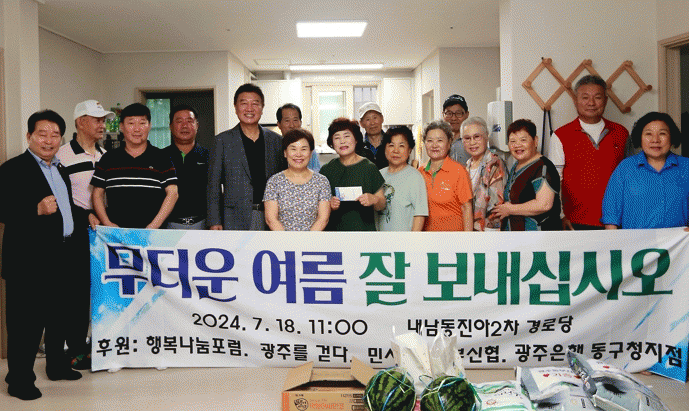 ¹Ú ÀÇ¿øÀº Áö¿ª ºÀ»ç´Üü Çູ³ª´®Æ÷·³(°øµ¿´ëÇ¥ ¹ÚÁ¾±Õ, ¹ÚÂùÈ£) 20¸íÀÇ È¸¿øµé°ú ÇÔ²² Áö¿ª ³» Áø¾Æ 2Â÷ °æ·Î´ç, ¿ë¿¬ °æ·Î´ç, ¿ì¹æ 1Â÷ °æ·Î´çÀ» ¹æ¹®ÇØ Æø¿°°ú À帶 ¹«´õÀ§¿¡ ÁöÄ£ ¾î¸£½ÅµéÀÌ °Ç°ÇÏ°Ô ¿©¸§À» ³¯ ¼ö ÀÖµµ·Ï ¼ö¹Ú, ½Ò, ¾ÆÀ̽ºÅ©¸² µî ÈÄ¿ø¹°Ç°À» Àü´ÞÇß´Ù.