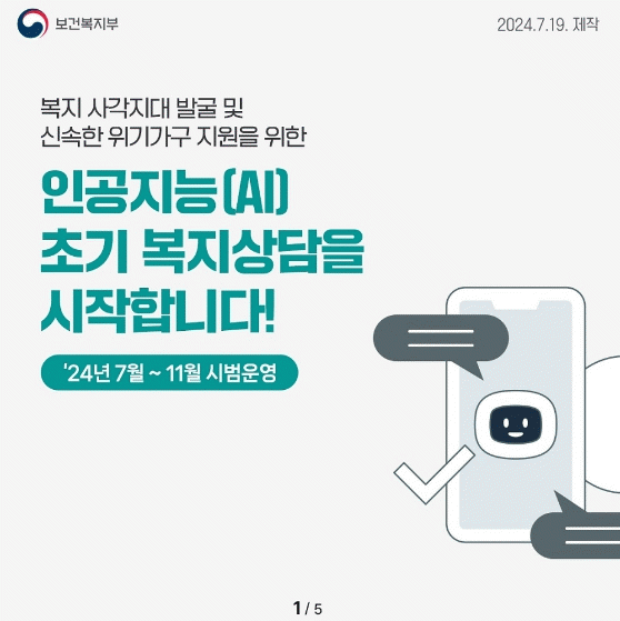 ½Ã´Â º¸°Çº¹ÁöºÎ ÁÖ°ü ¡®AI Ȱ¿ë º¹Áö»ç°¢Áö´ë ¹ß±¼ Ãʱâ»ó´ã ½Ã¹ü»ç¾÷¡¯¿¡ 2´Ü°è ½Ã¹ü»ç¾÷ ÁöÀÚü·Î ¼±Á¤µÇ¾î 1ÀÎ °¡±¸ Áõ°¡, °í·ÉÈ µî »çȸÀû À§Çè ¿äÀÎ Áõ°¡¿¡ ¹ßºü¸£°Ô ´ëÀÀÇϰí ÀÖ´Ù.