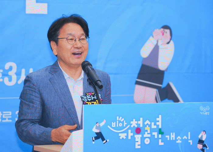 °±âÁ¤ ±¤ÁÖ½ÃÀåÀº ¡°ºñ¾Æ û¼Ò³âÀÚÀ²°ø°£Àº û¼Ò³âµé°ú ¸¶À»È°µ¿°¡µéÀÌ ¸ð¿© ù¹ßÀ» ¶Ã°í, ÇàÁ¤ÀÌ ÈûÀ» ´õÇØ ¸¸µç °á°ú¹°ÀÌ´Ù¡±¸ç ¡°À̰÷Àº û¼Ò³âµéÀÇ ³îÀÌÅͰ¡ µÇ°í ²ÞÀ» Ű¿ì´Â °÷ÀÌ µÉ °ÍÀÌ´Ù. û¼Ò³âÀÌ °Ç°ÇØ¾ß ³ª¶ó°¡ Æ°Æ°ÇØÁö±â¿¡ ¾ÕÀ¸·Îµµ ±¤Áֽô û¼Ò³âµéÀÇ ¸ñ¼Ò¸®¿¡ ´õ¿í ±Í¸¦ ±â¿ïÀ̰ڴ١±°í ¹àÇû´Ù.