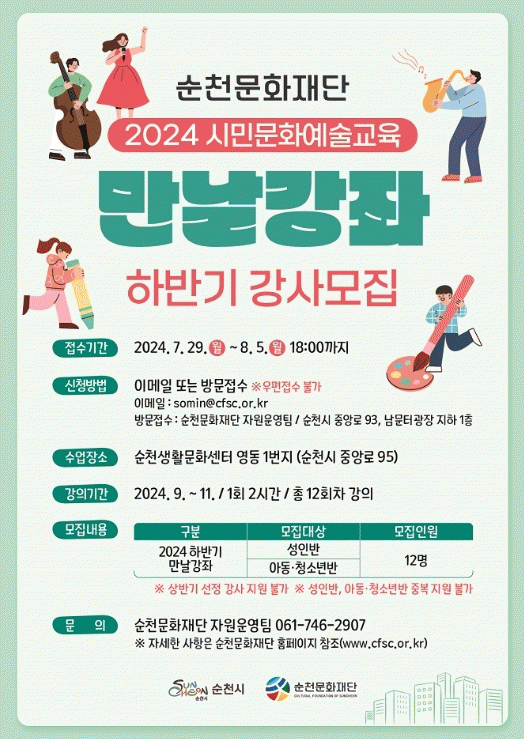 (Àç)¼øÃµ¹®ÈÀç´Ü, 2024 ½Ã¹Î¹®È¿¹¼ú±³À° ¸¸³¯°Á ÇϹݱ⠰»ç 12ÀÎ ¸ðÁý