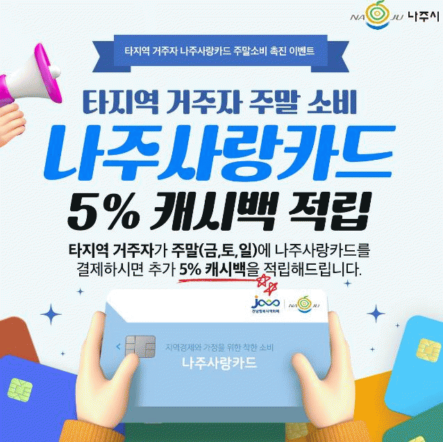 30ÀÏ ³ªÁֽÿ¡ µû¸£¸é Áö³ 6¿ùºÎÅÍ Å¸Áö¿ª°ÅÁÖÀÚ°¡ ±Ý¿äÀϺÎÅÍ ÀÏ¿äÀÏ Áö¿ªÈÆó °¡¸ÍÁ¡¿¡¼ ³ªÁÖ»ç¶ûÄ«µå·Î °áÁ¦Çϸé ÃÑ»ç¿ë±Ý¾×ÀÇ 5%¸¦ ¸ð¹ÙÀÏ ¾Û(chak)¿¡ Áï½Ã Àû¸³ÇØÁÖ°í ÀÖ´Ù.