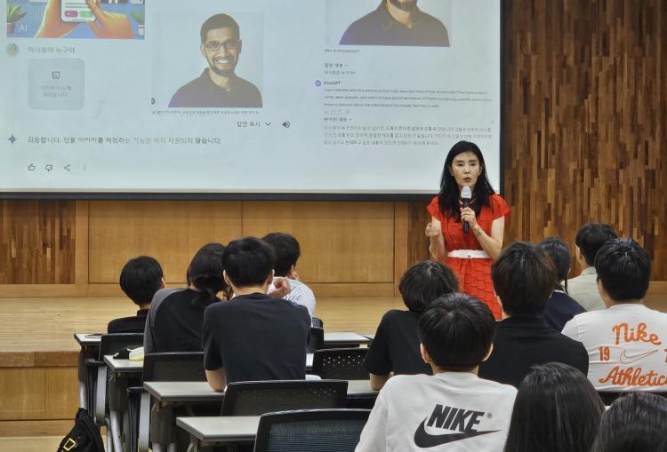 1ºÎ°¿¬À» ÁøÇàÇÑ ¹é¶õ±³¼ö´Â ¡°ÇлýµéÀÌ ÀΰøÁö´É¿¡ ´ëÇÑ °ü½ÉÀÌ »ó´çÈ÷ ¸¹¾Æ 2½Ã°£ °ÀÇ¿¡ ÁýÁßµµ°¡ ¸Å¿ì ³ô¾Æ¼ È¿À²ÀûÀ¸·Î ÁøÇàÇÒ ¼ö ÀÖ¾ú´Ù¡±°í ¸»Çß´Ù.