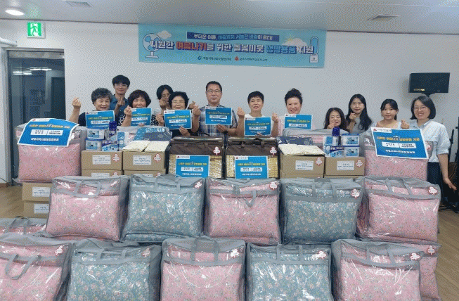 Çà»ç¿¡¼´Â Çе¿ Áö»çÇù À§¿øµéÀÌ ¿¬ÀÏ µ¹º½ÀÌ¿ôÀ» ¹æ¹®ÇØ ¿©¸§À̺Ò, ´ëÀÚ¸®, Àΰ߽dz»º¹, ¿©¸§¹°Ç° ²Ù·¯¹Ì µîÀ» Àü´ÞÇÏ°í ¾ÈºÎ¸¦ È®ÀÎÇÏ´Â ½Ã°£À» °¡Á³´Ù.