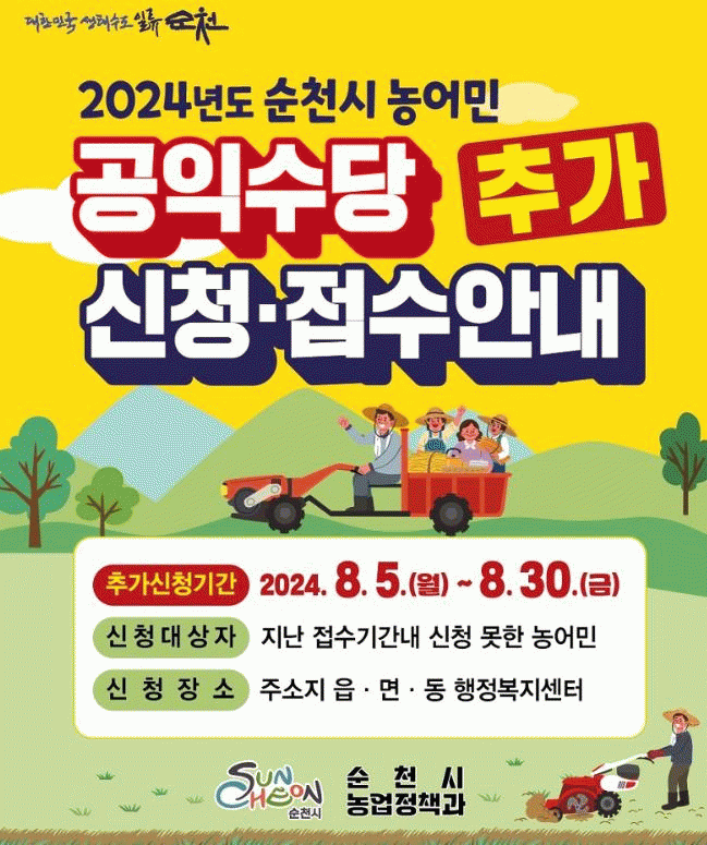 À̹ø Ãß°¡½ÅûÀº Áö³ ½Åû±â°£ µ¿¾È ½ÅûÇÏÁö ¸øÇÑ ³ó¾î¹ÎÀ» ´ë»óÀ¸·Î Çϸç, ½ÅûÀº ÁÖ¼ÒÁö °üÇÒ À¾¸éµ¿ ÇàÁ¤º¹Áö¼¾ÅÍ¿¡¼ °¡´ÉÇÏ´Ù.