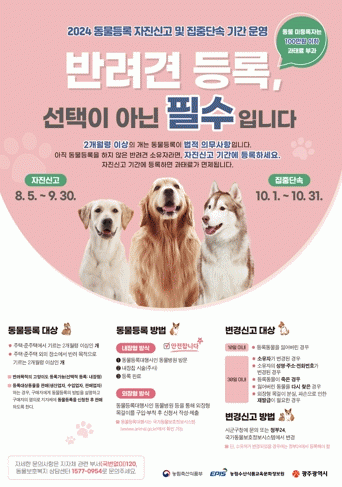 ±¤Áֽô ÀÚÁø½Å°í ±â°£ÀÌ ³¡³ª´Â ¿À´Â 10¿ù 1ÀϺÎÅÍ 31ÀϱîÁö ÇÑ ´Þ°£ ¹Ý·Á°ßÀÇ ÃâÀÔÀÌ ¸¹Àº °÷¿¡¼ µ¿¹° ¹Ìµî·Ï ¹× º¯°æ»çÇ× ¹Ì½Å°í¿¡ ´ëÇÑ ÁýÁß ´Ü¼ÓÀ» ½Ç½ÃÇÒ °èȹÀÌ´Ù.
