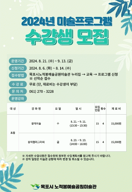 À̹ø ÇÁ·Î±×·¥Àº âÀǹ̼ú, âÀÇ͏®±×¶óÇÇ·Î ±¸¼ºµÇ¾î ÀÖÀ¸¸ç ¼ö°½ÅûÀº ¿À´Â 6ÀϺÎÅÍ 14ÀϱîÁö ³ëÀûºÀ¿¹¼ú°ø¿ø¹Ì¼ú°ü ´©¸®ÁýÀ» ÅëÇØ °¡´ÉÇÏ¸ç ¼±Âø¼øÀ¸·Î ¸¶°¨µÈ´Ù.
