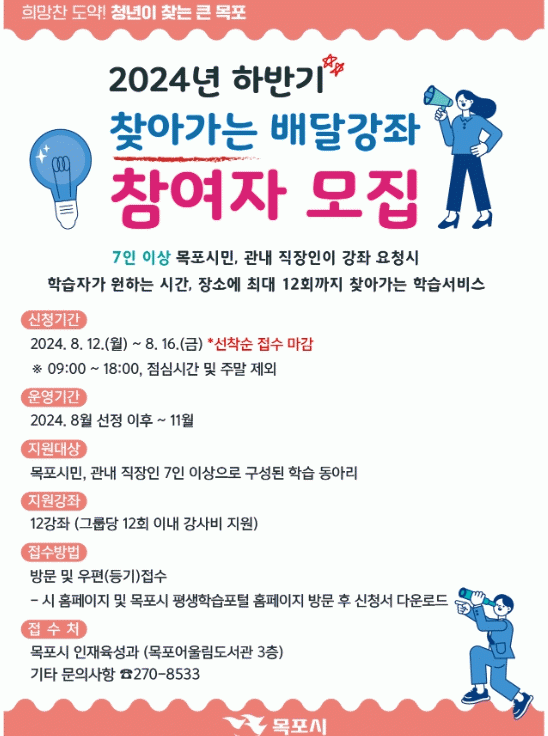 ¡®Ã£¾Æ°¡´Â ¹è´Þ°Á¡¯´Â ÇнÀÀÚ°¡ ¿øÇÏ´Â ½Ã°£°ú Àå¼Ò¿¡ °»ç¸¦ ¹è´ÞÇϴ ã¾Æ°¡´Â Æò»ýÇнÀ ÇÁ·Î±×·¥À¸·Î, ½Åû ´ë»óÀº 7ÀÎ ÀÌ»óÀÇ ¸ñÆ÷½Ã¹Î, °ü³» Á÷ÀåÀÎÀ¸·Î ±¸¼ºµÈ ÇнÀ µ¿¾Æ¸®À̸ç, ¹®È¿¹¼ú, °ø¿¹, ¾Ç±â µî ´Ù¾çÇÑ ºÐ¾ßÀÇ Æò»ýÇнÀ °Á ½ÅûÀÌ °¡´ÉÇÏ´Ù.