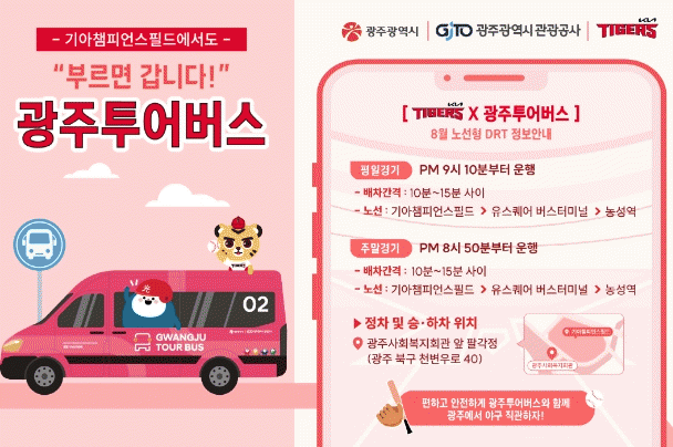 ±¤ÁÖ±¤¿ª½Ã´Â À̿밴ÀÌ ¿øÇÏ´Â Á¤·ùÀå¿¡¼ ¾ÛÀ¸·Î È£ÃâÇϸé ã¾Æ¿À´Â ¡®±¤ÁÖÅõ¾î¹ö½º¡¯ÀÇ Á¤·ùÀå¿¡ ±â¾ÆÃ¨ÇǾð½ºÇʵ带 8ÀϺÎÅÍ Ãß°¡Çϰí, ±â¾Æ ŸÀ̰ÅÁî ±¸´Ü°ú Çù¾÷ÇØ °¢Á¾ È«º¸¿Í À̺¥Æ®¸¦ ÃßÁøÇÑ´Ù.