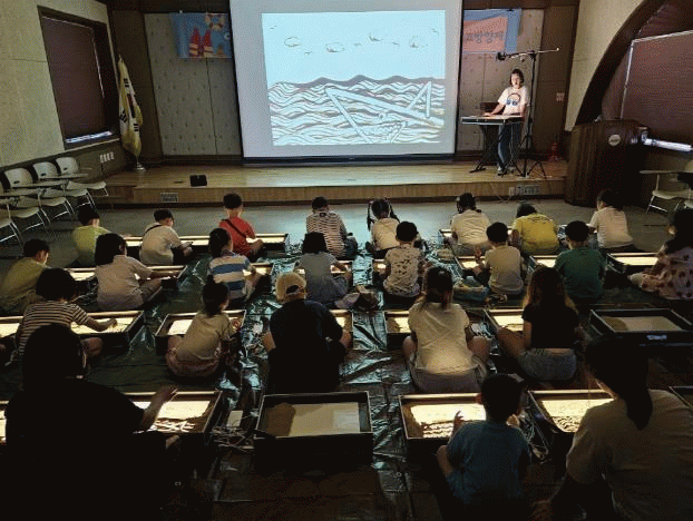 ¡ã¸ð·¡¿¹¼ú(»÷µå¾ÆÆ®) °ø¿¬°ú üÇè ÇÁ·Î±×·¥Àº ÃʵîÇлý 60¸íÀÌ Âü¿©ÇßÀ¸¸ç, 8¿ù 4ÀÏ¿¡ 1ºÎ¿Í 2ºÎ·Î ³ª´©¾î °ø¿¬, ¸ð·¡¸¦ ÀÌ¿ëÇÑ ±×¸² ±×¸®±â üÇèÀ» ÅëÇØ ½Å±âÇÔ°ú ¿¹¼ú¼ºÀ» Èì»¶ ´À³¢´Â °æÇèÀ» ÇÑ ÇлýµéÀÌ Áñ°Å¿öÇß´Ù.