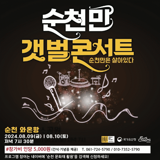 ¼±Âø¼ø 100¸íÀÇ »çÀü Á¢¼öÀÚ¿¡°Ô´Â 5õ¿øÀÇ Âü°¡ºñ·Î Æí¾ÈÇÏ°í °¨¼º Ãæ¸¸ÇÑ Ä·ÇÎ Á¼® ¹èÁ¤°ú ÇÔ²² ±â³äǰ°ú °£½ÄÀÌ Á¦°øµÈ´Ù. »çÀü Á¢¼ö´Â ÀüÈ(061-724-5790, 010-7352-5790) ¶Ç´Â ³×À̹ö¿¡¼ ¡®¼øÃµ¹®ÈÀ¯»êȰ¿ë»ç¾÷¡¯À» °Ë»öÇÏ¿© ½ÅûÇÒ ¼ö ÀÖ´Ù. »çÀüÁ¢¼ö¸¦ ÇÏÁö ¾Ê¾Æµµ ÇöÀå¿¡¼ °ø¿¬ °ü¶÷ ¹× üÇè Âü¿©°¡ °¡´ÉÇÏ´Ù.