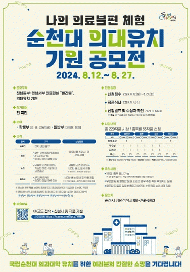 °ø¸ð ÁÖÁ¦´Â ¡®Àü³²µ¿ºÎ¡¤°æ³²¼ºÎ ÀÇ·á Çö½Ç¡°»¡°£ºÒ¡±, ÀÇ´ëÀ¯Ä¡ ±â¿ø!¡¯À¸·Î ³»°¡ °ÞÀº ÀÇ·áºÒÆí »ç·Ê³ª ¼øÃµ´ë ÀÇ´ë À¯Ä¡¸¦ ±â¿øÇÏ´Â ³»¿ëÀ» ÀÚÀ¯·Ó°Ô Ç¥ÇöÇÏ¸é µÈ´Ù.