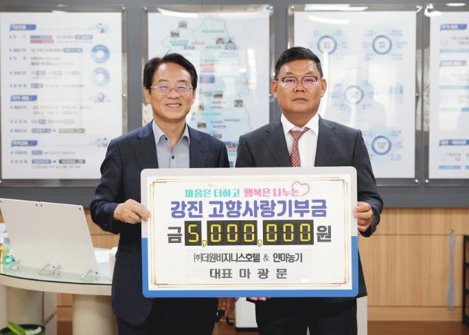 Àü³² °Áø±ºÀº Áö³ 12ÀÏ ¢ß´õ¿øºñÁî´Ï½ºÈ£ÅÚ ´ëÇ¥ ¹× °Áø, ÀåÈï ¾á¸¶³ó±â°è ´ëÇ¥¸¦ ¿ªÀÓÇϰí ÀÖ´Â ¸¶±¤¹® ´ëÇ¥°¡ °Áø±º¿¡ °íÇâ»ç¶û±âºÎ±Ý 5¹é ¿øÀ» ±âŹÇß´Ù°í ¹àÇû´Ù.