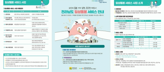 Àϻ󵹺½ ¼ºñ½º´Â ¼ºñ½º Á¦°øÀηÂÀÌ ÀÌ¿ëÀÚ °¡Á¤À» ¹æ¹®ÇØ ÀÏÁ¤ ½Ã°£ ³»¿¡¼ Àç°¡ µ¹º½¡¤°¡»ç ¹× ÀÏ»ó»ýȰÀ» Áö¿øÇÏ´Â ±âº»¼ºñ½º¿Í Áúȯ µîÀ¸·Î ½Ä»ç Áغñ°¡ ¾î·Á¿î ´ë»óÀÚ¿¡°Ô ¸ÂÃãÇü ½Ä»ç¸¦ Áö¿øÇÏ´Â ½Ä»ç¡¤¿µ¾ç°ü¸® ¼ºñ½º, º´¿ø µ¿Çà º¸Á¶ ¹× Á¢¼ö¡¤¼ö³³ µî Áö¿øÇÏ´Â º´¿ø µ¿Çà ¼ºñ½º, Àü¹®°¡¿¡ ÀÇÇÑ ¸ÂÃãÇü ½É¸®Áö¿ø ¼ºñ½º µî Ưȼºñ½º¸¦ Á¦°øÇϰí ÀÖ´Ù.