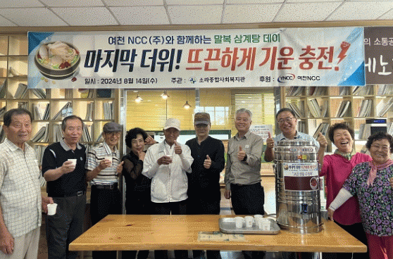 14ÀÏ À̳¯ Çà»ç¿¡´Â ¿©ÃµNCC¢ß ÀÓÁ÷¿øµéÀÌ ¹«´õÀ§°¡ °¡Àå ½ÉÇÏ´Ù´Â »ïº¹(ß²ÜÑ) °¡¿îµ¥ ¸¶Áö¸· º¹³¯À» ¾î¸£½ÅµéÀÌ ¹«Å»ÇÏ°Ô º¸³¾ ¼ö ÀÖµµ·Ï »ï°èÅÁ°ú ½Ã¿øÇÑ ¼öÁ¤°ú 200ÀκÐÀ» ÁغñÇßÀ¸¸ç, YNCC ÀÚ¿øºÀ»çÀÚµéÀº ÀÌ¿ë ¾î¸£½Åµé°ú Á¡½ÉÀ» ÇÔ²²ÇÏ¸ç ¾î¸£½ÅµéÀÇ µû¶æÇÑ ¸»¹þÀÌ µÇ¾îÁá´Ù.