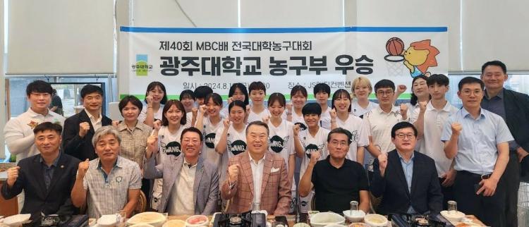 Àü°©¼ö ±¤ÁÖ½ÃüÀ°È¸ÀåÀº ¡°±¤ÁÖ´ëÀÇ À̹ø ¿ì½ÂÀº Áö¿ª»çȸÀÇ Å« ÀÚ¶ûÀÌÀÚ ¿µ±¤ÀÌ´Ù. ¾ÕÀ¸·Îµµ ¼±¼öµéÀÌ ²ÙÁØÈ÷ ¼ºÀåÇÒ ¼ö ÀÖµµ·Ï Àû±ØÀûÀÎ Áö¿øÀ» ¾Æ³¢Áö ¾Ê°Ú´Ù¡±¶ó¸ç ¼±¼öµé°ú °ü°èÀÚµéÀ» °Ý·ÁÇß´Ù.