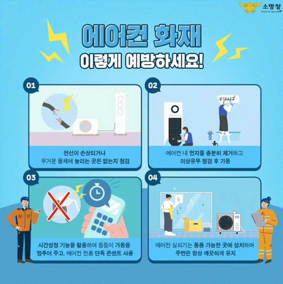 ÁÖ¿ä ¿¹¹æ¼öÄ¢À¸·Î´Â ¡ãÀü¼±ÀÌ ¼Õ»óµÇ°Å³ª ¹«°Å¿î ¹°Ã¼¿¡ ´¸®´ÂÁö Á¡°Ë ¡ã¿¡¾îÄÁ ³» ¸ÕÁö¸¦ ÃæºÐÈ÷ Á¦°Å ¹× ÀÌ»óÀ¯¹« Á¡°Ë ÈÄ °¡µ¿ ¡ã½Ã°£¼³Á¤ ±â´É Ȱ¿ë ¡ã¿¡¾îÄÁ Àü¿ë ´Üµ¶ Äܼ¾Æ® »ç¿ë ¡ã¿¡¾îÄÁ½Ç¿Ü±â´Â Åëdz °¡´ÉÇÑ °÷¿¡ ¼³Ä¡ ¡ã½Ç¿Ü±â ÁÖº¯Àº ±ú²ýÇÏ°Ô À¯ÁöÇÏ´Â µî »ýȰ ¼Ó ¿¹¹æÀÌ Áß¿äÇÏ´Ù.