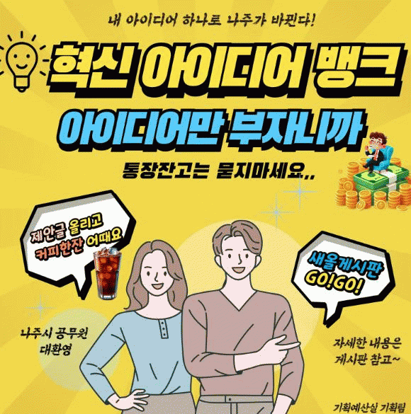³ªÁֽô ¹Î¼± 8±â ½ÃÁ¤ Àü¹Ý¿¡ ´ëÇÑ °ø¹«¿øÀÇ Á¤Ã¥ Á¦¾È ⱸÀÎ ¡®³ªÁÖ Çõ½Å ¾ÆÀ̵ð¾î ¹ðÅ©¡¯¸¦ ¿ÃÇØ ù ¿î¿µÇÑ´Ù°í 19ÀÏ ¹àÇû´Ù.