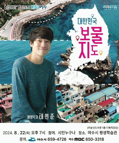 À̹ø °¿¬Àº ¡®Å¿øÁØ ¿©ÇàÀÛ°¡°¡ ¾Ë·Áµå¸®´Â ´ëÇѹα¹ º¸¹°Áöµµ¡¯¸¦ ÁÖÁ¦·Î, ÀÛ°¡°¡ 3³â°£ Àü±¹À» ¿©ÇàÇÏ¸é¼ ¹ß°ßÇÑ ´ëÇѹα¹ÀÇ º¸¹° °°Àº ¿©ÇàÁö¸¦ ¼Ò°³Çϰí, ±¹³» ¿©ÇàÀ» ¾ËÂ÷°í Àç¹Õ°Ô Áñ±â´Â ¹æ¹ýÀ» °øÀ¯ÇÒ ¿¹Á¤ÀÌ´Ù.