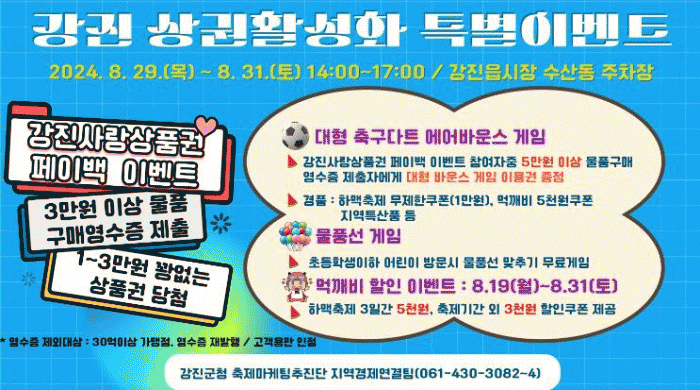 À̹ø À̺¥Æ®´Â °Áø±º ³» ¼Òºñ ÃËÁøÀ» À¯µµÇϰí Áö¿ª°æÁ¦¸¦ Ȱ¼ºÈÇϱâ À§ÇØ ¸¶·ÃµÇ¾úÀ¸¸ç, ÀÌ¿Í ÇÔ²² ÇϸÆÃàÁ¦±â°£ °ÁøÀ¾ »ó±ÇȰ¼ºÈ¸¦ À§ÇÑ ´Ù¾çÇÑ À̺¥Æ®°¡ ÆîÃÄÁ® Áö¿ª »ó±Ç Ȱ¼ºÈ¿¡ Å« ±â´ë¸¦ ¸ðÀ¸°í ÀÖ´Ù.