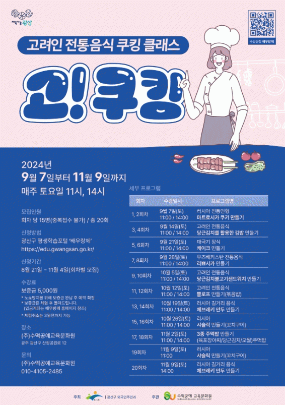 ÃÑ 20Â÷½Ã·Î, ȸÂ÷´ç 15¸íÀ» ¼±Âø¼ø ¸ðÁýÇÑ´Ù. Âü¿© ½ÅûÀº 21ÀϺÎÅÍ ¹è¿ì¶û²² ´©¸®Áý(https://edu.gwangsan.go.kr)¿¡¼ ÇÒ ¼ö ÀÖ´Ù.