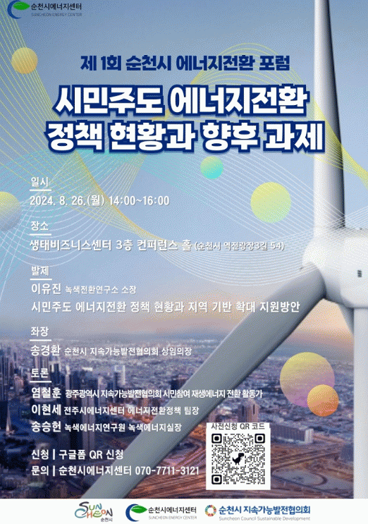 ÇÑÆí ¼Û°æÈ¯ ¼øÃµ½Ã Áö¼Ó°¡´É¹ßÀüÇùÀÇȸ »óÀÓÀÇÀåÀ» ÁÂÀåÀ¸·Î ¿°Ã¶ÈÆ ±¤ÁÖ±¤¿ª½Ã Áö¼Ó°¡´É¹ßÀüÇùÀÇȸ ½Ã¹ÎÂü¿© Àç»ý¿¡³ÊÁö Àüȯ Ȱµ¿°¡, ÀÌÇö¼¼ ÀüÁֽÿ¡³ÊÁö¼¾ÅÍ ¿¡³ÊÁöÀüȯÁ¤Ã¥ ÆÀÀå, ¼Û½ÂÇå ³ì»ö¿¡³ÊÁö¿¬±¸¿ø ³ì»ö¿¡³ÊÁö½ÇÀåÀÌ Åä·Ð¿¡ Âü¿©ÇÑ´Ù.