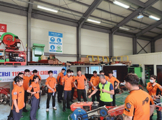 ±³À°¿¡´Â °Áø¼Ò¹æ¼ ÇöÀåÃ⵿´ë¿ø 20¸íÀÌ Âü¿©Çß´Ù. ´ë¿øµéÀº °Áø±º ³ó¾÷±â¼ú¼¾ÅÍ ³ó±â°è ÀÓ´ë»ç¾÷¼Ò¿¡¼ ¡ã³ó±â°è Á¾·ù ¹× Ư¡ ±³À° ¡ã³ó±â°è ÀÛµ¿¿ø¸® ±³À° ¡ã³ó±â°è »ç°í ÀÀ±Þóġ ¹æ¹ý ¡ã³ó±â°è Á¶ÀÛ ¹× ºÐÇØ ¡ã¾ÈÀü»ç°í »ç·Ê¸¦ °øÀ¯ÇÏ¿© »ç°í À¯Çüº° ´ëÀÀ ¹æ¹ý ¹× ¾ÈÀü»ç°í ¹æÁö ¹æ¾È¿¡ ÁýÁßÀûÀ¸·Î ÈÆ·ÃÇß´Ù.