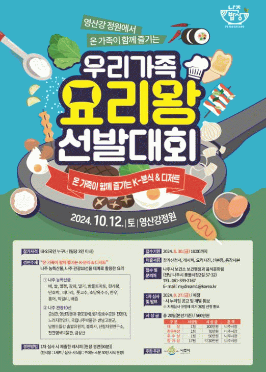 ´ëȸÀÇ ÁÖÁ¦´Â '¿Â °¡Á·ÀÌ ÇÔ²² Áñ±â´Â K-ºÐ½Ä¡¤µðÀúÆ®'·Î ³ªÁÖÀÇ ³óƯ»ê¹°°ú °ü±¤ 10¼±À» Ȱ¿ëÇØ ´Ùä·Î¿î ¿ä¸®¸¦ ¼±º¸ÀÏ ¿¹Á¤ÀÌ´Ù.