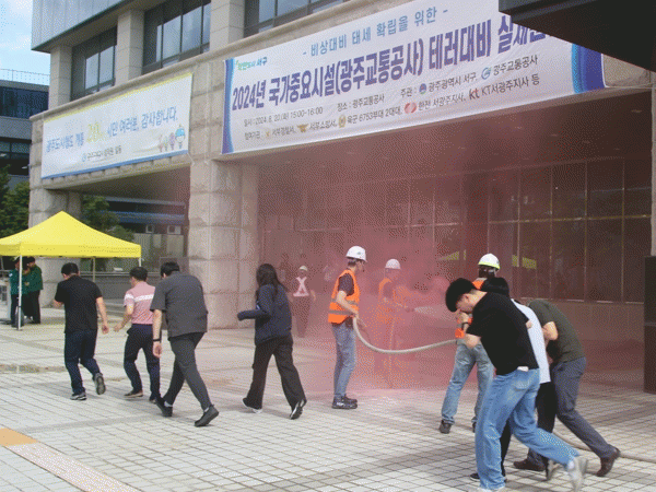 À̹ø ÈÆ·ÃÀº ±¤ÁÖ±³Åë°ø»ç º»»ç »ç¿Á¿¡¼ µå·ÐÀ» ÀÌ¿ëÇÑ Æø¹ß¹° Å×·¯°¡ ¹ß»ýÇÑ °¡»óÀÇ »óȲÀ» »óÁ¤ÇßÀ¸¸ç Ãʱ⠻óȲ ÀüÆÄ, ÈÀç Áø¾Ð, ½Ã¹Î ´ëÇÇ, ºÎ»óÀÚ ÀÌ¼Û µî ½ÇÁ¦ Àç³ »óȲ ¿¬ÃâÀ» ÅëÇÑ ½ÇÁúÀû ´ëÀÀ ´É·Â °È¿¡ ÁßÁ¡À» µÎ°í ÁøÇàµÆ´Ù.