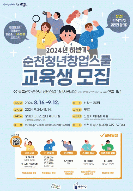 ¼øÃµÃ»³ââ¾÷½ºÄðÀº ¿¹ºñâ¾÷ÀÚµéÀÌ ²À ¾Ë¾Æ¾ß ÇÒ Ã¢¾÷±âÃʺÎÅÍ Á¤ºÎÁö¿ø±ÝÀ» ¹Þ±â À§ÇÑ »ç¾÷°èȹ¼ ¿Ï¼º±îÁö Àü´ã¸àÅä 1:1 ÄÚĪÀÌ ÀÌ·ç¾îÁö´Â â¾÷¿¬´ç ´ëÇ¥ ÇÁ·Î±×·¥ÀÌ´Ù.
