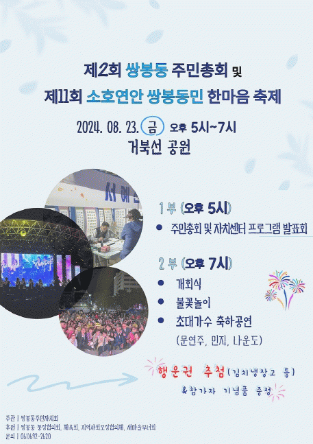 1ºÎ´Â ÁÖ¹ÎÃÑȸ¸¦ ºñ·ÔÇØ ÁÖ¹ÎÀÚÄ¡ ÇÁ·Î±×·¥ ¼ö°»ýµéÀÌ ÁغñÇÑ Ç³¹°³îÀÌ, ½ºÆ÷Ã÷´í½º, Åë±âŸ¡¤Çϸð´ÏÄ« °ø¿¬°ú ¼¿¹¡¤¼öÃ¤È ÀÛǰ Àü½Ã°¡ ÁغñµÉ ¿¹Á¤ÀÌ´Ù.