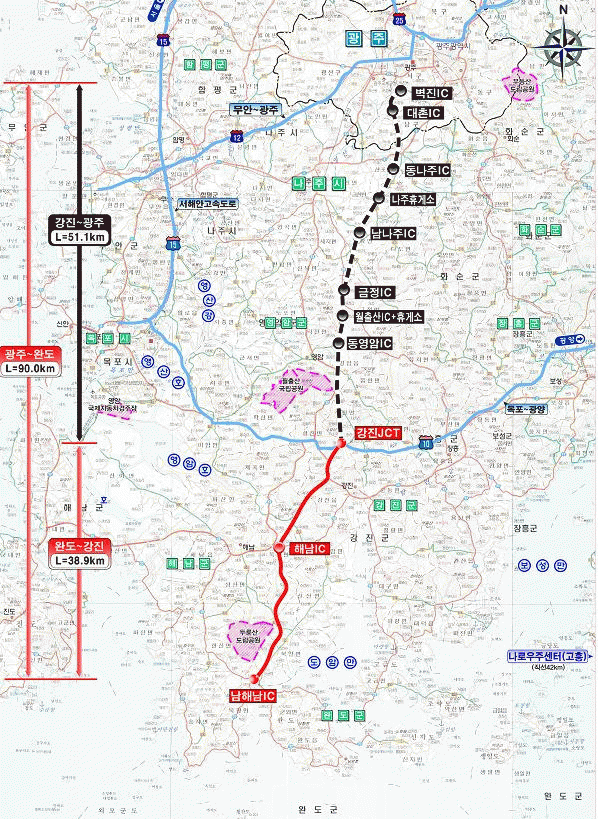 »ç¾÷ÀÌ ¿Ï·áµÇ¸é °ø»ç ÁßÀÎ °Áø-±¤ÁÖ¼±°ú ¿¬°áÇÔÀ¸·Î½á, °í¼Óµµ·Î Á¢±Ù¼ºÀÌ ´ëÆø °³¼±µÇ¾î Àü³²ÀÇ ¿ì¼öÇÑ °ü±¤ÀÚ¿øÀ» ±â¹ÝÀ¸·Î ÇÑ Áö¿ª°æÁ¦ Ȱ¼ºÈ¿Í ÀÏÀÚ¸® âÃâ µî °æÁ¦, ÀÇ·á, ¹®È, ±³À°, °ü±¤ µîÀÇ ¸¹Àº ºÐ¾ß¿¡¼ Àü³² ¼³²ºÎ±Ç¿¡ Å« º¯È¸¦ °¡Á®¿Ã °ÍÀ¸·Î ±â´ëµÈ´Ù.