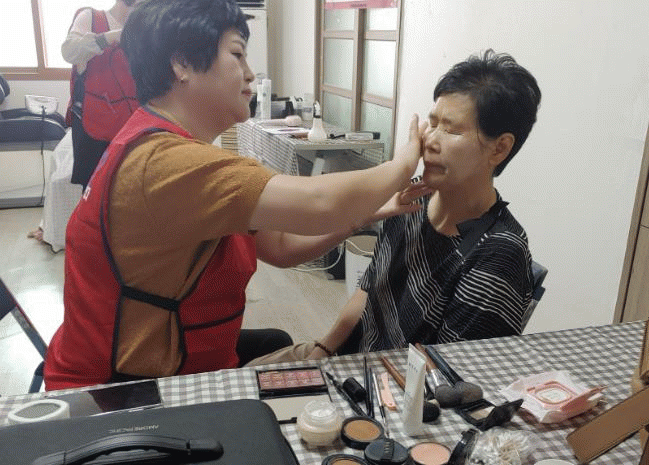¿µ¾ÏÀ¾¿¡ »ç´Â ÇØ½Â´Ô ºÀ»ç´Ü¿øÀº, 10¿© ³â Àü ¿µ¾ÏºÀ»ç´ÜÀÇ ½ÃÀÛºÎÅÍ ÇÔ²²ÇØ ¿µ¾Ï±º 120°³ ³Ñ´Â ¸¶À»ÀÇ ¾î¸£½Åµé¿¡°Ô ¸ÞÀÌÅ©¾÷À» ÇØÁá´Ù. ÇÑ ÈÀåǰ ȸ»çÀÇ Ä«¿î½½·¯·Î Àç´É±âºÎ¸¦ À̾î¿À°í ÀÖ´Â ±×´Â ¡°°áÈ¥ ÀÌÈķΠóÀ½, ½ÉÁö¾î ž¼ óÀ½À¸·Î ¸ÞÀÌÅ©¾÷À» ÇÑ´Ù´Â ¾î¸£½Åµµ ÀÖ´Ù. ±× ¾î¸£½ÅÀÌ ¿¹»µÁö´Â ¸ð½ÀÀ» ¿·¿¡¼ º¸°í, ´Ù¸¥ ¾î¸£½ÅµéÀÌ ¡®³ªµµ ÇØ´Þ¶ó¡¯°í ¸»ÇÒ ¶§ º¸¶÷ÀÌ Å©´Ù¡±°í ÀüÇß´Ù.