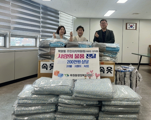 À̹ø ÈÄ¿ø ¹°Ç°Àº ¸ñ¿øµ¿ ÁÖ¹ÎÀÚÄ¡ ¿ª·®°È »ç¾÷ÀÇ ÀÏȯÀ¸·Î ÁøÇàµÆÀ¸¸ç, ¸ñ¿øµ¿ ÁÖ¹ÎÀÚÄ¡À§¿øÈ¸´Â Ãë¾à°èÃþÀÇ ¾ÈºÎ¸¦ »ìÇÇ¸é¼ »ç¶û ³ª´®À» ½ÇõÇß´Ù.