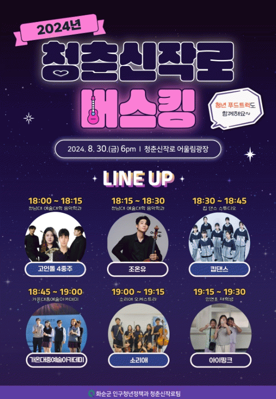 ¿À´Â 8¿ù 30ÀÏ(±Ý) °ø¿¬ Âü°¡ ´Üü´Â ¡ã°íÀε¹ 4ÁßÁÖ(Àü³²´ë À½¾ÇÇаú) ¡ãŵ´í½º ½ºÆ©µð¿À ¡ã°¡¿Â ´ëÁß¿¹¼ú ¾ÆÄ«µ¥¹Ì ¡ã¼Ò¸®¾Ö ¡ã¾ÆÀÌÇÎÅ©(¸¸¿¬ÃÊ ÀçÇлý)ÀÌ´Ù.