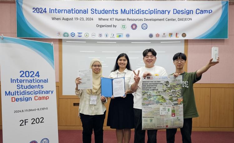 ±¤ÁÖ´ë Âü¿©ÆÀÀÎ ¡®Four young inventors¡¯ÆÀÀº ±¤ÁÖ´ë Çлý 2¸í(±â°èÀÚµ¿Â÷°øÇкÎ)°ú ¸»·¹ÀÌ½Ã¾Æ UKM(¸»·¹À̽þƱ¹¸³´ëÇÐ) Çлý 2¸íÀ¸·Î ÆÀÀ» ÀÌ·ï ¡®Innovator Algae-Based Oxygenation&Solation for Future Campus¡¯¶ó´Â ÁÖÁ¦·Î ¹Ì¼¼Á¶·ù¸¦ ÀÌ¿ëÇÑ °ø±âÁ¤È ¹× ½Ä¹° ¼ºÀå ÃËÁø ½Ã½ºÅÛÀ» °³¹ßÇØ ±Ý»ó(»ó±Ý 70¸¸ ¿ø)À» ¹Þ¾Ò´Ù.