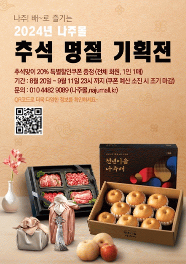 ³ªÁֽô ³óƯ»ê¹° °ø½Ä ¿Â¶óÀÎ ¼îÇθôÀÎ ¡®³ªÁÖ¸ô¡¯¿¡¼ Ãß¼®¸íÀý ÇÒÀÎ ±âȹÀüÀ» ¿À´Â 9¿ù 11ÀϱîÁö ÁøÇàÇÑ´Ù°í 28ÀÏ ¹àÇû´Ù.