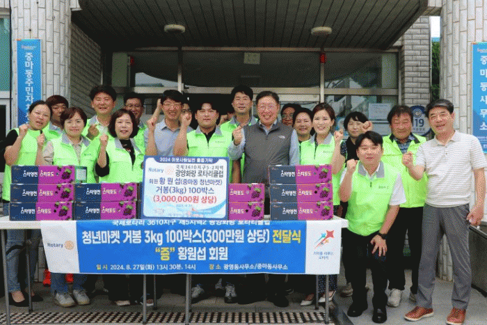±è¸í¼ø ±¤¾çȶû·ÎŸ¸®Å¬·´ ȸÀåÀº ¡°È²¿ø¼· ȸ¿øÀº 3³â° °úÀÏ·Î Áö¿ª»çȸ¿¡ ÀÌ¿ô»ç¶ûÀ» ½ÇõÇÏ´Â ¸ð¹üÀûÀÌ°í µëÁ÷ÇÑ È¸¿øÀÌ´Ù¡±¶ó¸ç ¡°ÈÄ¿ø ¹°Ç°À» Àü´Þ¹ÞÀº ºÐµé²²¼´Â ¹«´õ¿î ¿©¸§À» °Ç°ÇÏ°Ô Àß ³ª½Ã±æ ¹Ù¶õ´Ù¡±¶ó°í ÀüÇß´Ù.