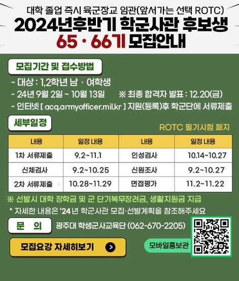 [ÅåÅå´º½º] ¡®2023³âµµ ÃÖÁ¤¿¹ Çбº´Ü¡¯À¸·Î ¼±Á¤µÈ ±¤ÁÖ´ëÇб³(ÃÑÀå ±èµ¿Áø) Çлý±º»ç±³À°´ÜÀÌ ¿À´Â 10¿ù 13ÀϱîÁö 1¡¤2Çгâ(³²¡¤¿©Çлý)À» ´ë»óÀ¸·Î 2024³âµµ ÈĹݱâ Çбº»ç°üÈ帻ýÀ» ¸ðÁýÇÑ´Ù.
