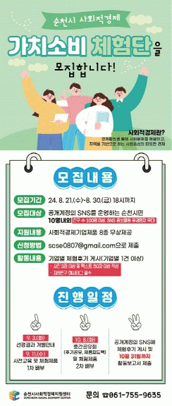 °¡Ä¡¼Òºñ üÇè´ÜÀº ¼øÃµ½Ã¹Î 10¸í ³»¿Ü·Î ±¸¼ºµÇ¸ç, °³ÀÎ ºí·Î±×¿Í SNS¸¦ ¿î¿µÇϰí Ä£±¸ ¼ö°¡ 100¸í ÀÌ»óÀÎ ½Ã¹ÎÀ» ´ë»óÀ¸·Î ÇÑ´Ù. üÇè´ÜÀº »çȸÀû °¡Ä¡¼ÒºñÀÇ °³³ä¿¡ ´ëÇÑ »çÀü ±³À°À» ¹Þ°í Ȱµ¿À» ½ÃÀÛÇÏ°Ô µÈ´Ù.