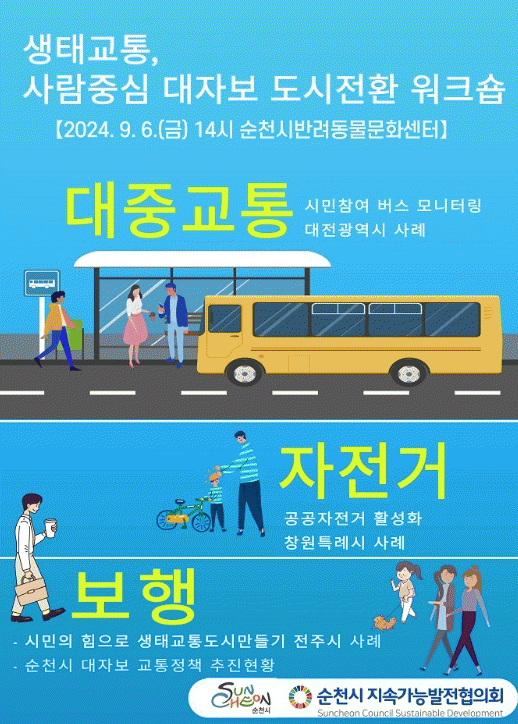¹ßÁ¦·Î Á¶±â¿µ â¿ø ·¹Æ÷Ã÷ÆÄÅ© °ø¿µÀÚÀü°ÅÆÀÀåÀÇ ¡®Ã¢¿ø °ø°øÀÚÀü°Å Ȱ¼ºÈ »ç·Ê¡¯, Ãß¸í±¸ ´ëÀü±¤¿ª½Ã Áö¼Ó°¡´É¹ßÀüÇùÀÇȸ »ç¹«Ã³ÀåÀÇ ¡® ½Ã¹ÎÂü¿© ½Ã³»¹ö½º ¸ð´ÏÅÍ´Ü ¿î¿µ »ç·Ê¡¯, °¼Ò¿µ ÀüÁֽà Áö¼Ó°¡´É¹ßÀüÇùÀÇȸ »ç¹«±¹ÀåÀÇ ¡®½Ã¹Î°ú ÇÔ²²ÇÏ´Â »ýű³Åë Ȱ¼ºÈ ÃßÁø »ç·Ê¡¯, °À̱¸ ¼øÃµ½Ã ±³ÅëÁ¤Ã¥°úÀåÀÇ ¡®¼øÃµ½Ã ´ëÀÚº¸ ±³ÅëÁ¤Ã¥ ÃßÁøÇöȲ¡¯¿¡ ´ëÇØ ¹ßÇ¥ÇÏ°í ¼Û°æÈ¯ ¼øÃµ½Ã Áö¼Ó°¡´É¹ßÀüÇùÀÇȸ »óÀÓÀÇÀåÀ» ÁÂÀåÀ¸·Î ¹ßÇ¥ÀÚµé°ú ÇÔ²² ´ëÀÚº¸ Ȱ¼ºÈ Åä·Ð¿¡ Âü¿©ÇÑ´Ù.